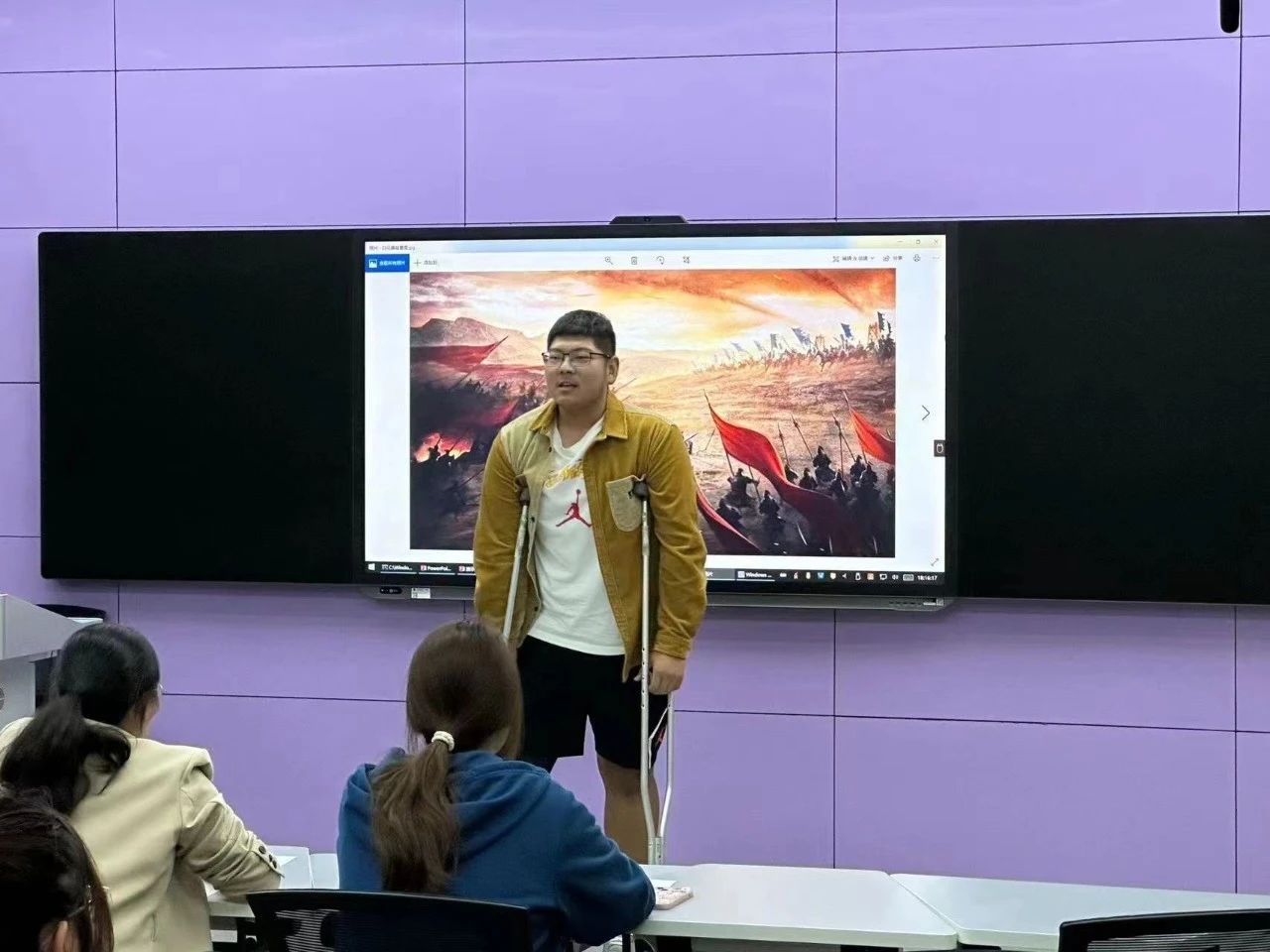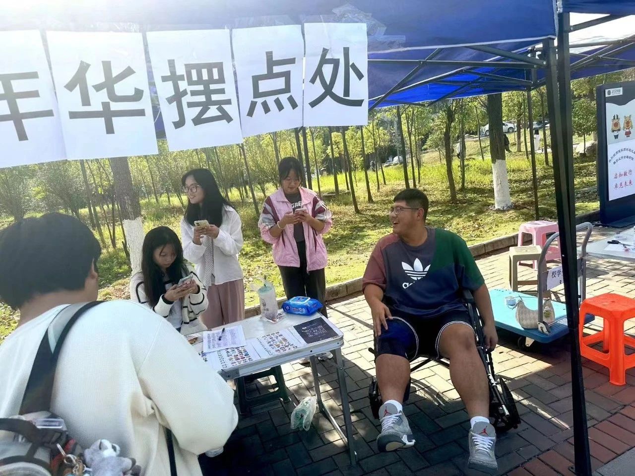 刚出院时,他需要坐轮椅,上楼梯时需要拄拐杖。隔壁宿舍的同学帮他买饭、取快递和倒垃圾。他的三名室友则充当起他的临时“保镖”,后面有人推轮椅,左前方有人拿拐杖,右前方有人背书包……他们四人形影不离地穿梭在学校里,像《西游记》里师徒四人那样面对困难不屈不挠,团结协作。辅导员每周至少一次去他宿舍嘘寒问暖。