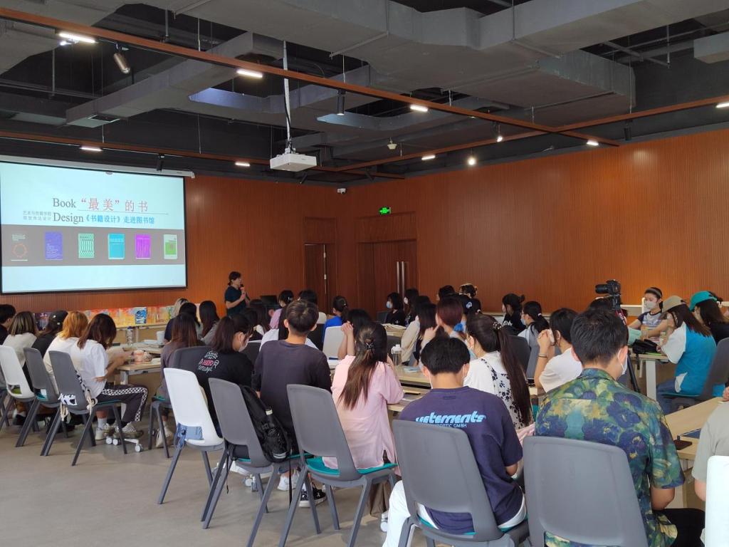 在此次课程教学中,温爱莲结合课程需求,从图书馆的发展历程、概况、楼层分布、空间布局、图书馆相关专题书展及艺术展和学生作品收藏等方面进行了分享,特别针对《书籍设计》展示了我校图书馆馆藏图书中非常具有代表的各式装帧形式、各式开本形式以及各式印刷纸张和不同材质书籍,在场师生震撼而感动,着实打开了对书籍认识的眼界。